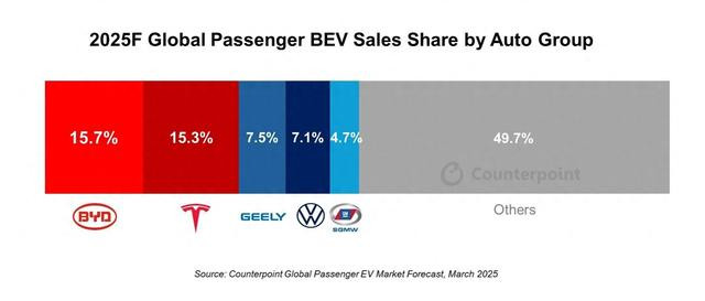 比亚迪一季度全球纯电销冠, 同比增长38.74%!